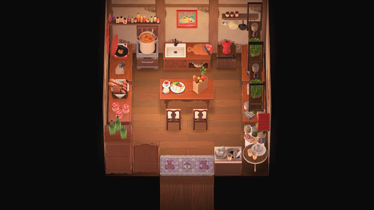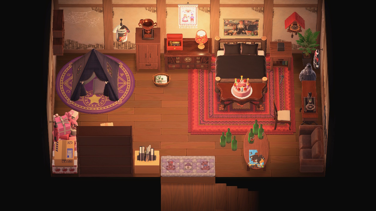 Hilda's house is rather old and outdated, with Hilda struggling to pay for necessary upgrades that would have her home better fit the rest of Lunarvale. As such, Dirt-clod walls and Common flooring take up the majority of the home. An important detail to note is the antique furniture Hilda uses, which further compliments the theming of Hilda's interior. The abundance of apple cider bottles and tin cans contrasts this old but stable environment, which presents an interesting theme if players decide to pick up on this.
