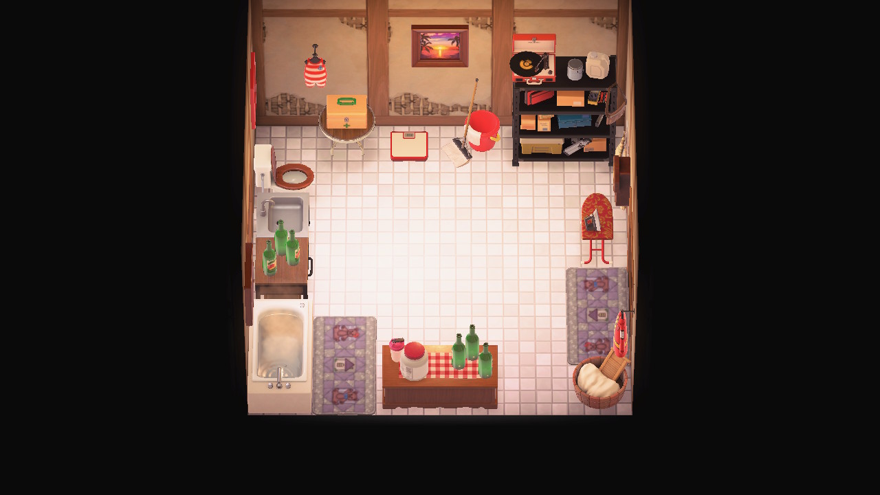 As mentioned earlier, the exception to the same-y wall/flooring is the bathroom of course, which uses White mosaic-tile flooring. This was a requirement unfortunately paid for by Marianne since older tiled floors used... asphalt tiling. Eugh. On the bright side, the bathroom has an assortment of things that suggest a life outside of solitude, like a protein bottle given to her by Brad, and an outfit from Marianne's closet once thought to be thrown away.