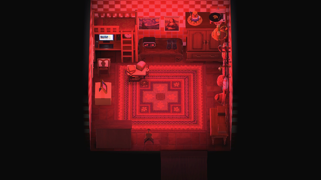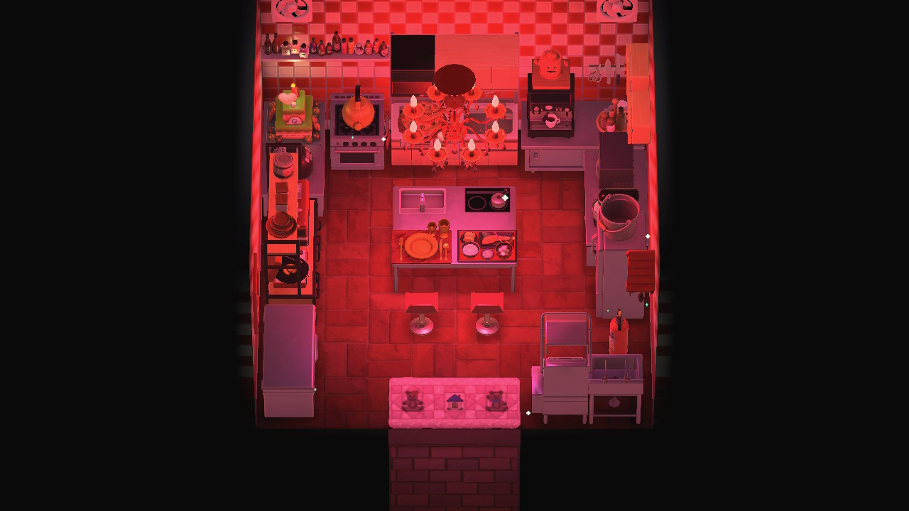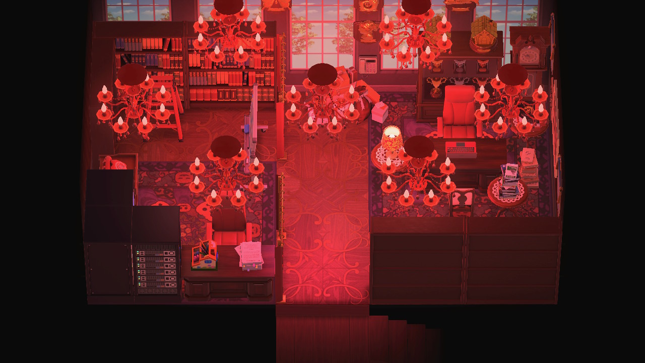 Another exception is the basement, comprised of mostly metallic furniture with occasional splashes of red like with the SLR camera, espresso maker, and Microwave.