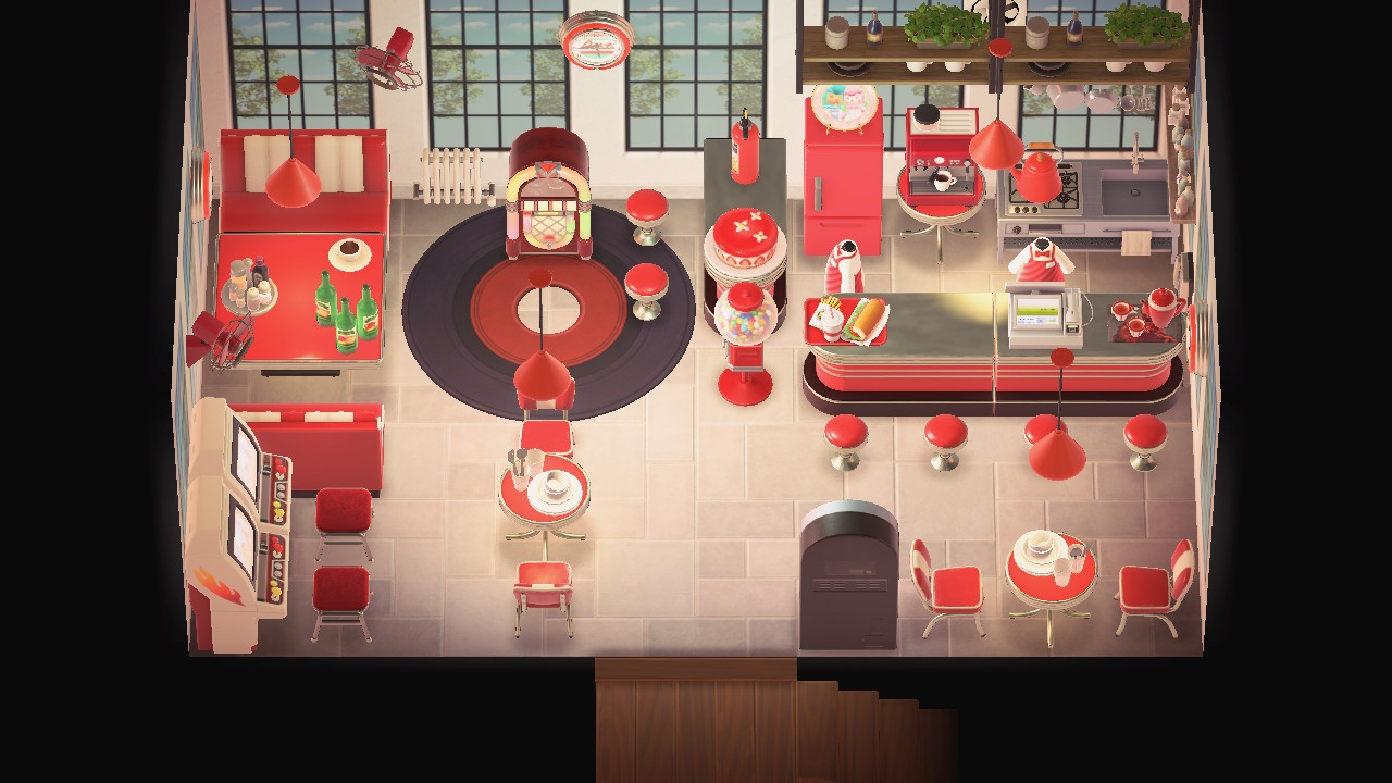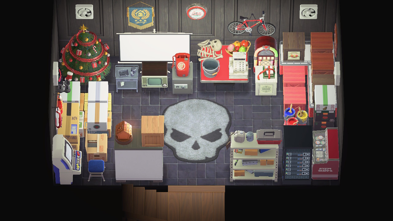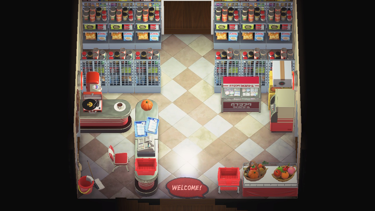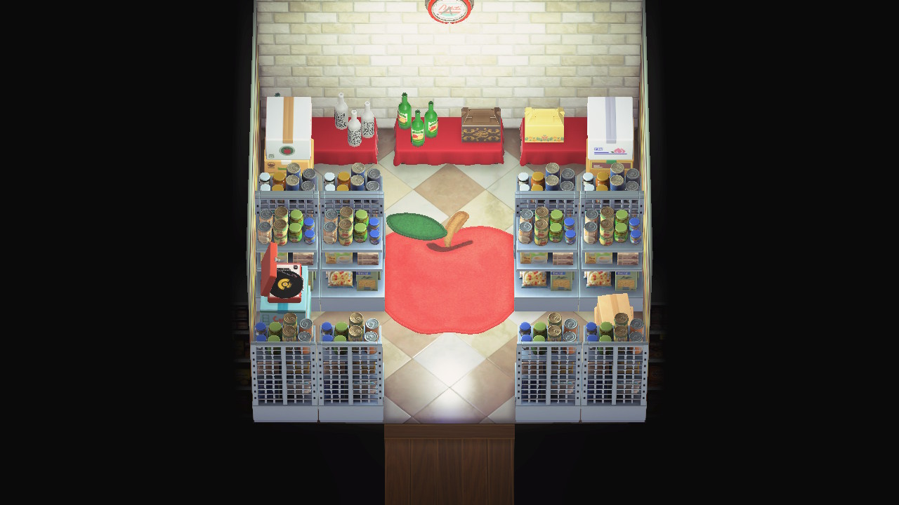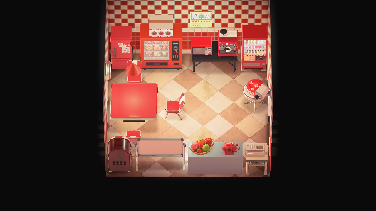 While not inheritely large in-game, Tanaka's Department Store is a big box location, with freezers and store shelves lined wall-to-wall containing an assortment of different goods. It's comprised mostly of furniture from the Diner and Supermarket themes, the former being especially true for the 50's-themed diner held on the 2nd floor.